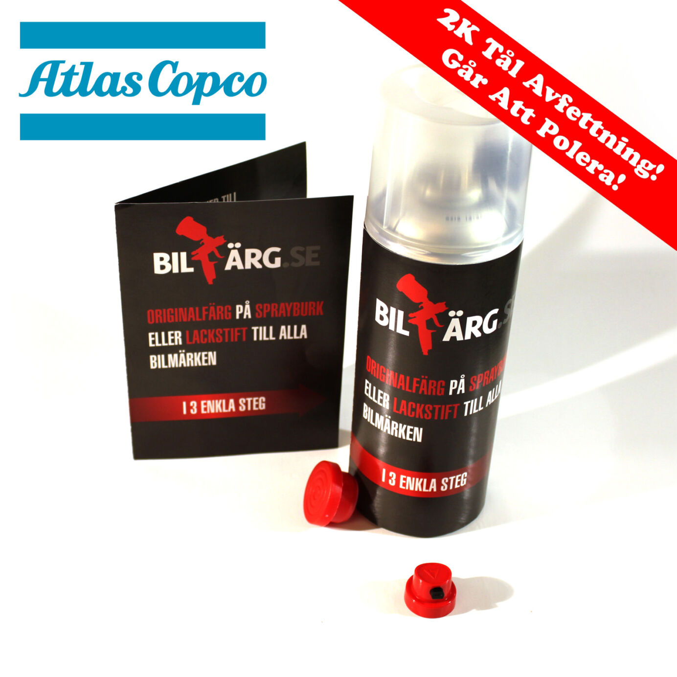 Är du ute efter bättringsfärg /lackstift /sprayfärg till Atlas Copco? Behöver du fixa stenskott, repor i lacken eller spraya mindre skador på bilen? Då har vi högkvalitativa 2-komponent-paket komplett med klarlack. Du kan välja mellan sprayfärgspaket 2-komponent och bättringsfärg-kit 2-komponent.