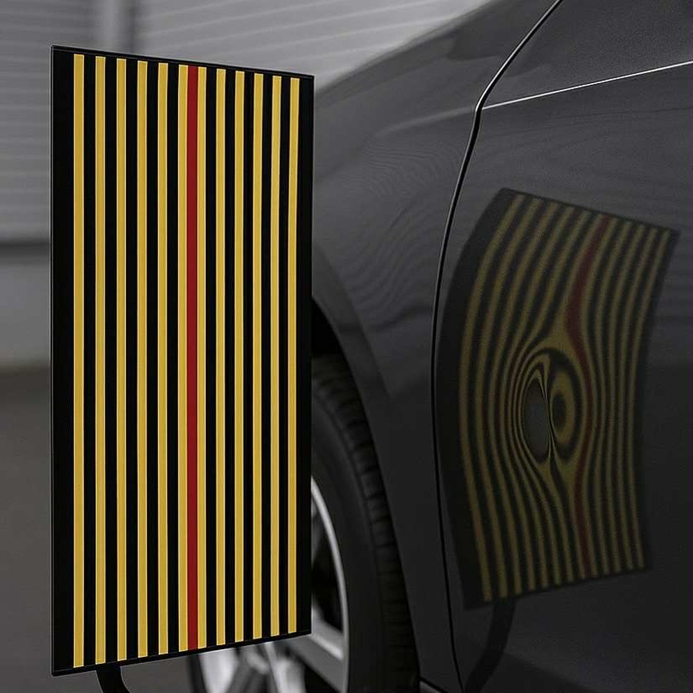 Reflektionstavlan visar exakt var bucklor och ojämnheter sitter genom tydliga linjer som reflekteras i bilens lackyta – perfekt för både proffs och hobbyanvändare.Egenskaper