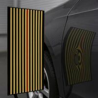 - Tydlig reflektion: Svarta och gula linjer på framsidan och vita breda linjer på baksidan gör det enkelt att upptäcka bucklor.