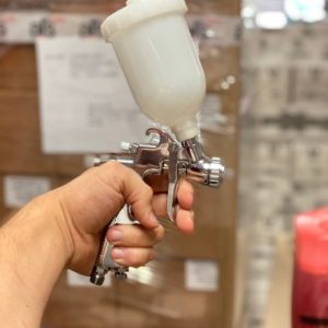 Perfekt standard spotrepair färgspruta i liten storlek anpassad för mindre lackeringar och spot repair. Med 1,0 mm munstycke. Komplett med överliggande kopp. Denna har en liten praktisk kopp på 100ml perfekt för små bättringar i lacken.